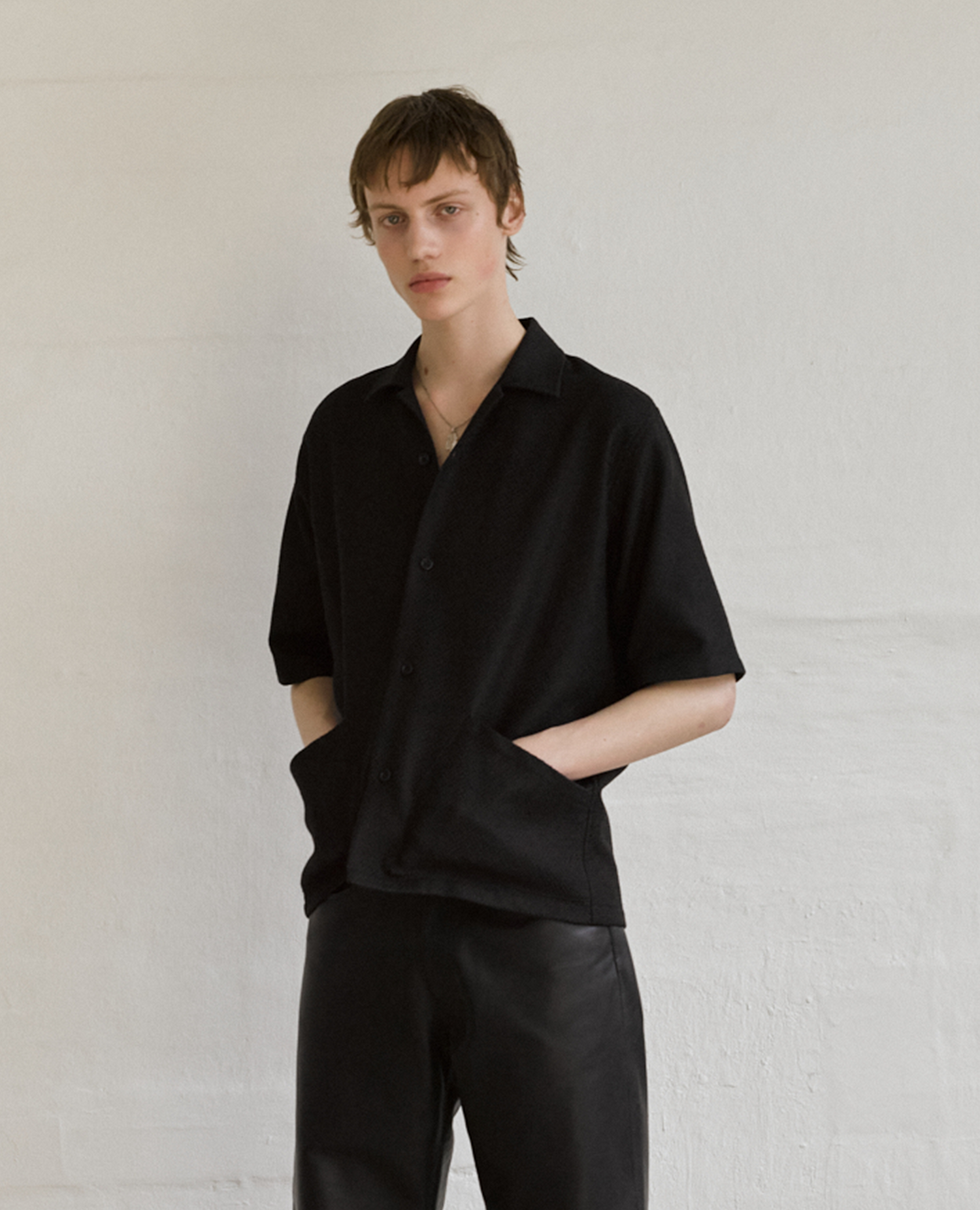 A slightly relaxed short sleeve Cabana shirt with a straight hem and two front pockets. Made of basketweave cotton blend and closed with eco-friendly corozo buttons.