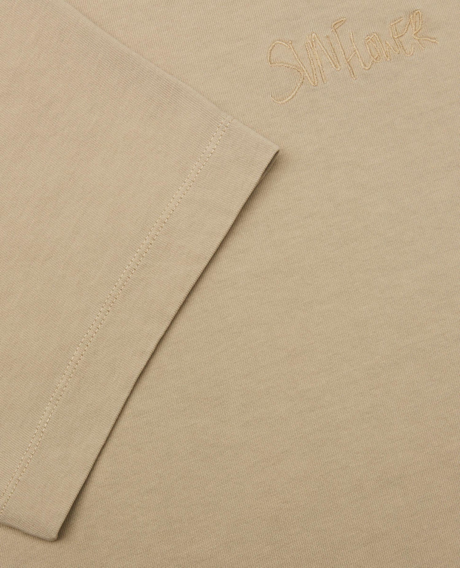A relaxed-fit t-shirt made of heavy organic cotton. Garment dyed with the Sunflower logo proudly embroidered on the front; digital print and embroidery on the back.