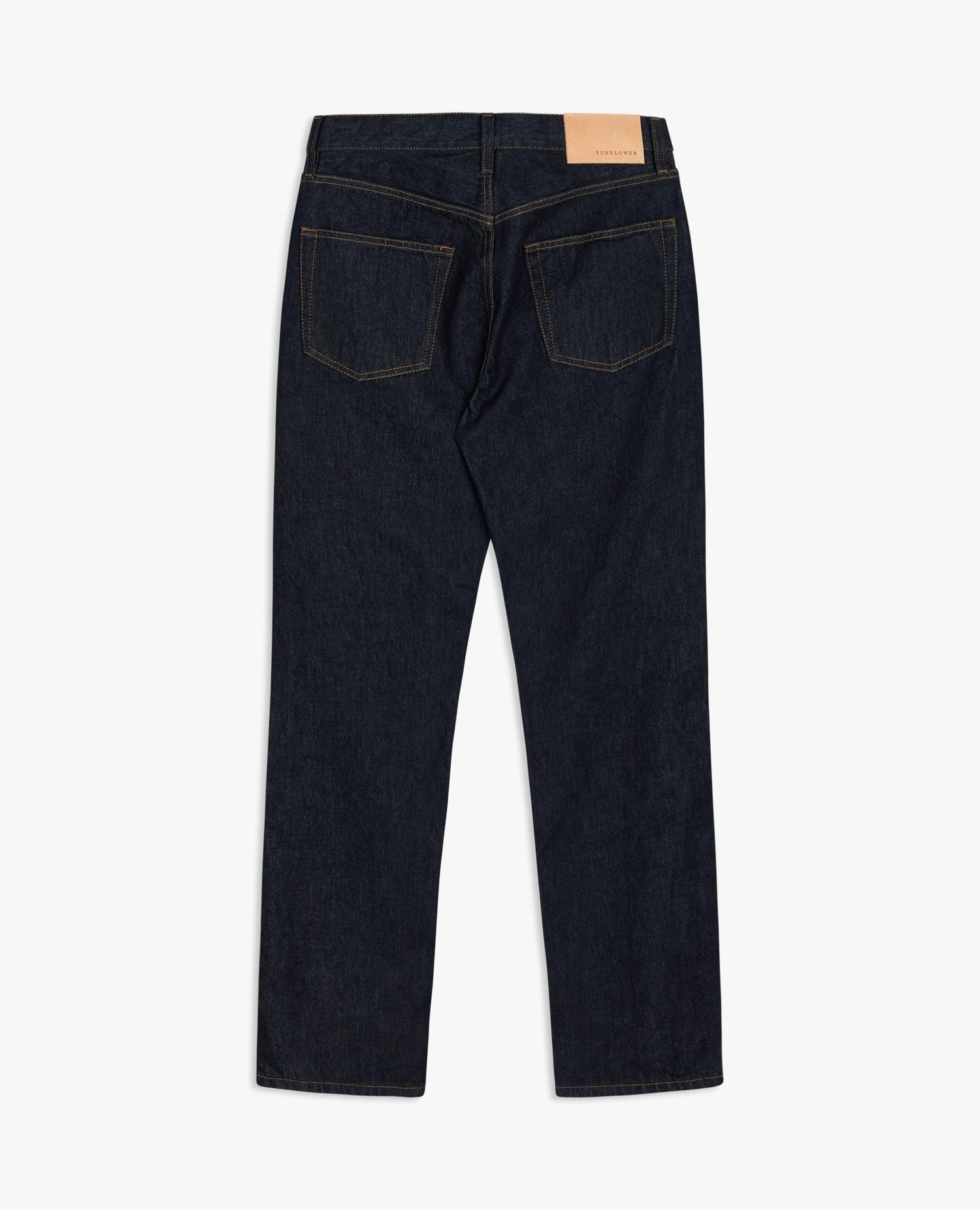 Classic relaxed-fit Italian-made jeans. Made of 13,5 oz Italian denim spun from GOTS-certified organic cotton. Features five pockets (two back pockets, two front pockets, and a watch pocket) and a button fly. Complete with OEKO-TEX-certified recycled metal trim and an environmentally friendly blue rinse wash.