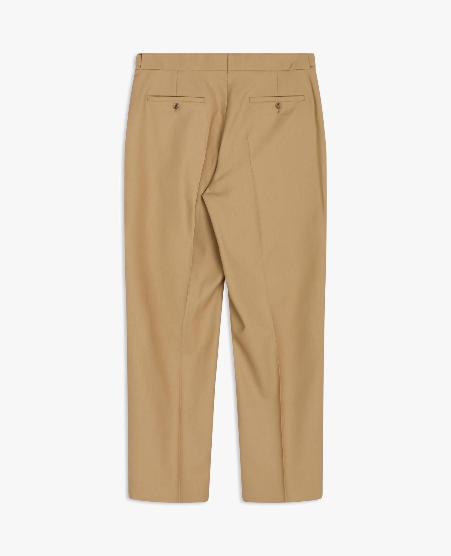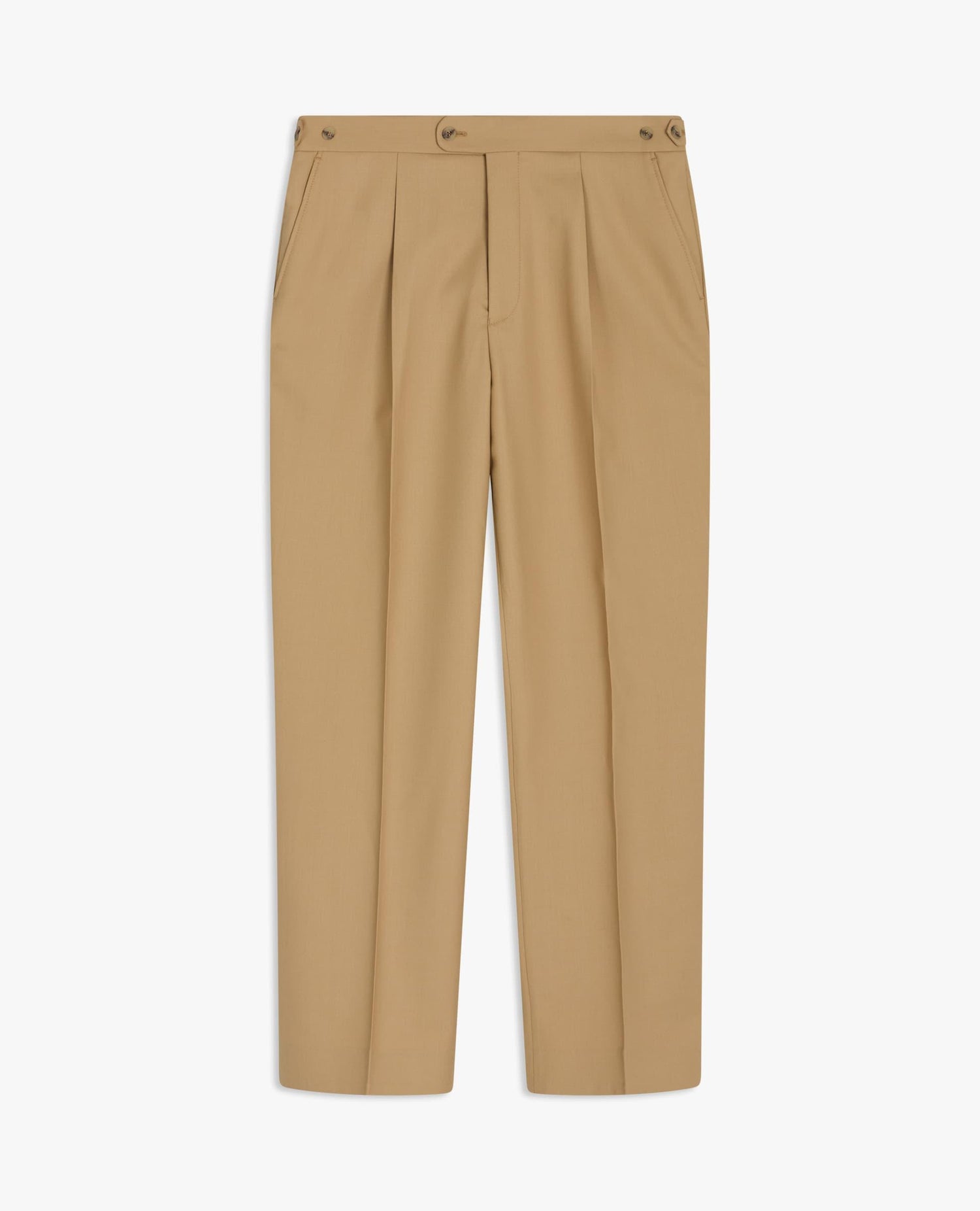 Classic relaxed-fit pleated trousers with an adjustable waistband. Made of a wool blend. Feature two front pockets and two buttoned back pockets.