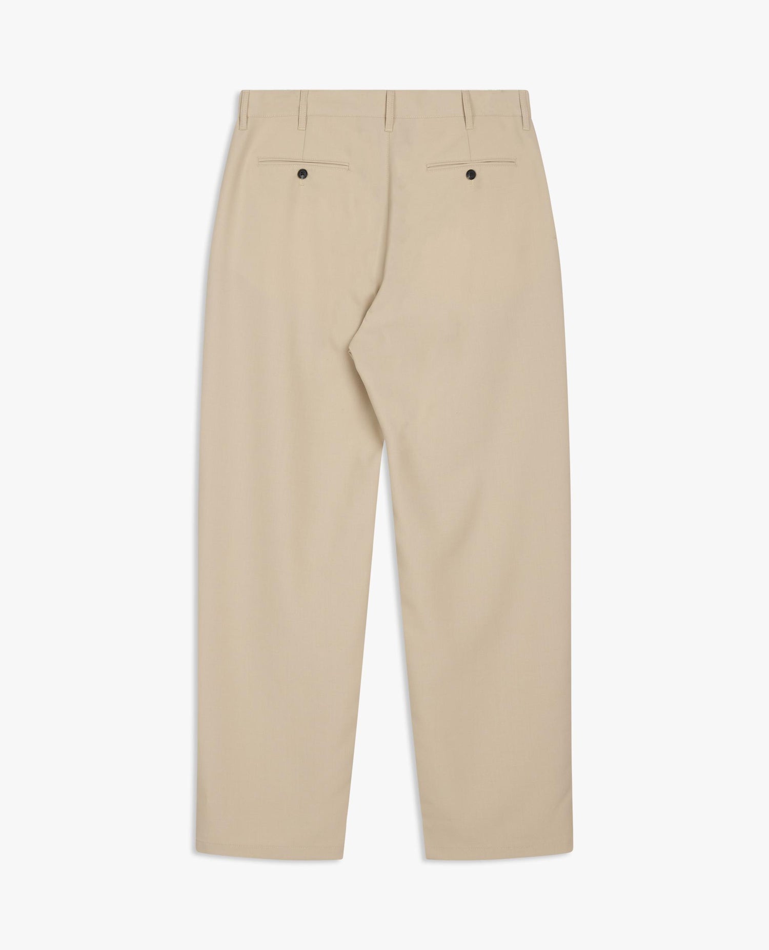Classic relaxed-fit trousers with horn buttons and silver metal zip fly. Made of a medium-weight wool blend in a plain weave.